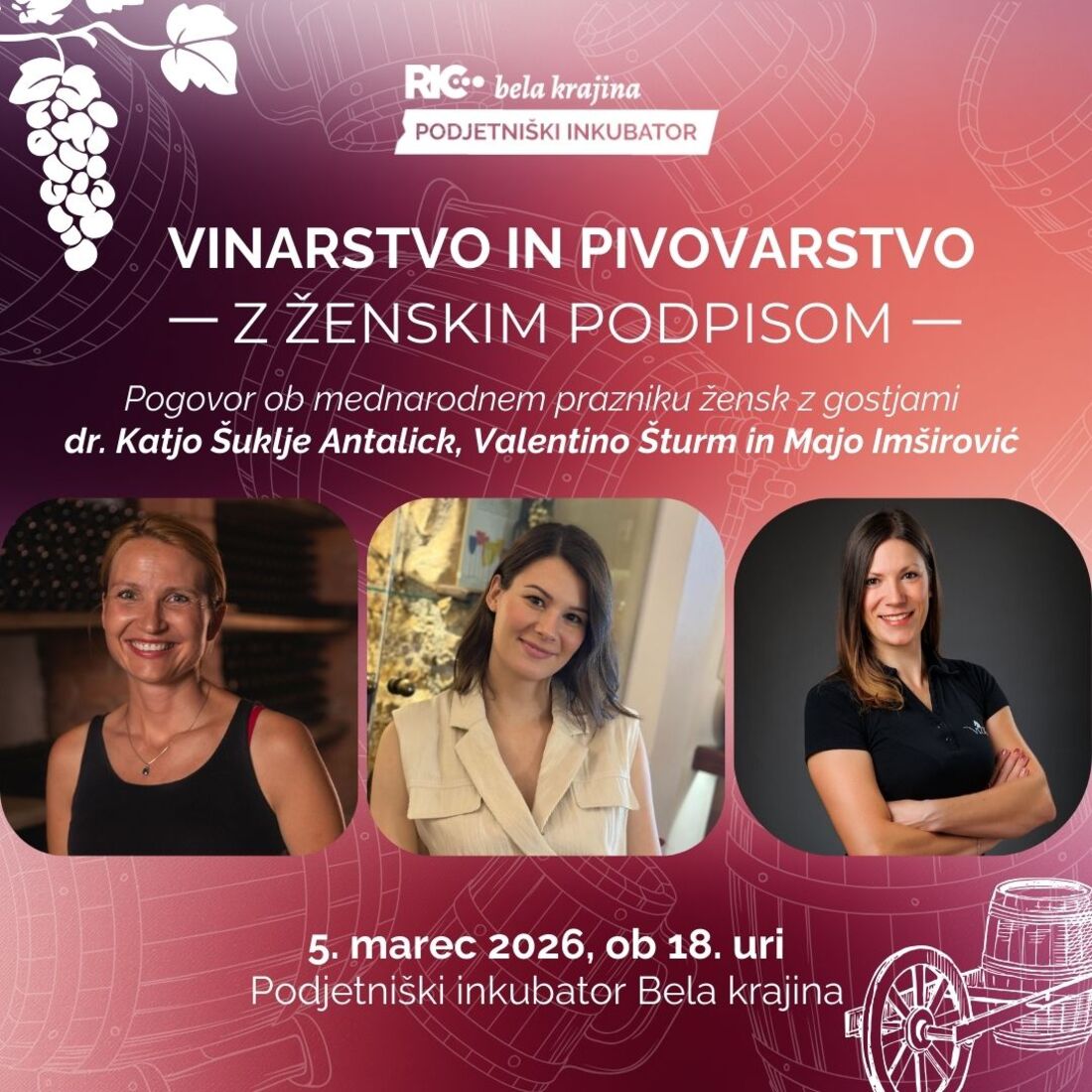 Pridružite se nam v četrtek, 5. marca 2026, ob 18.00 v Podjetniškem inkubatorju Bela krajina, kjer bodo svoje zgodbe, izkušnje in poglede delile izjemne gostje: