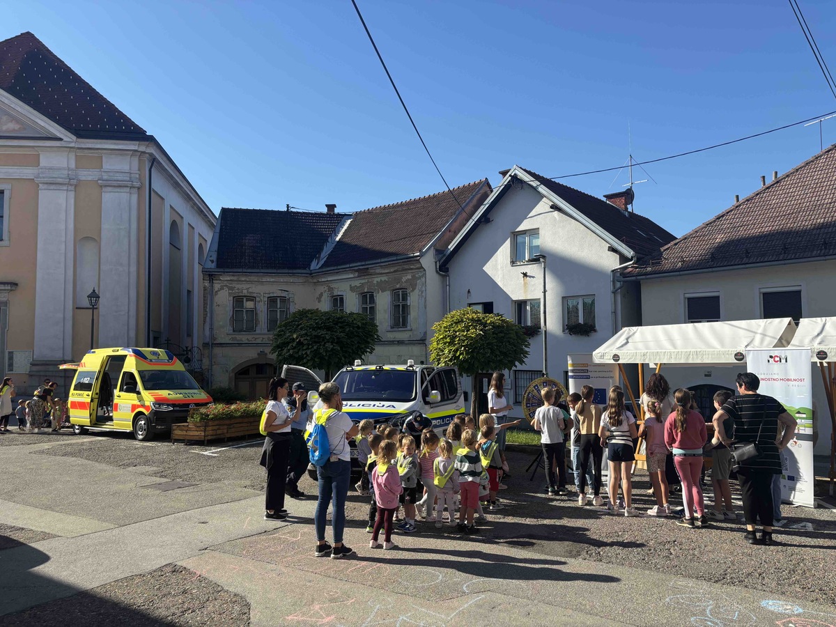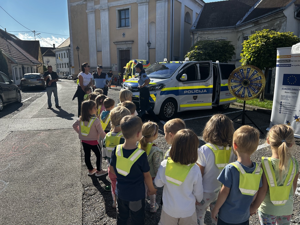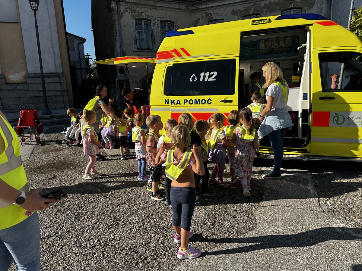 Otroci so z navdušenjem raziskovali policijska, gasilska in reševalna vozila, ki so jih pripravili lokalni partnerji. Hvala Policijski postaji Metlika, Gasilski zvezi Metlika in Zdravstvenemu domu Metlika za sodelovanje.