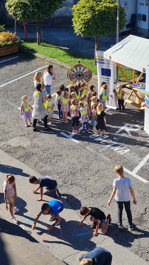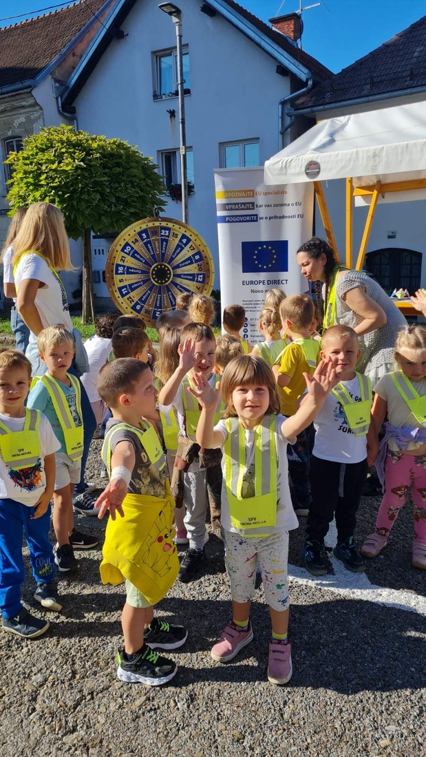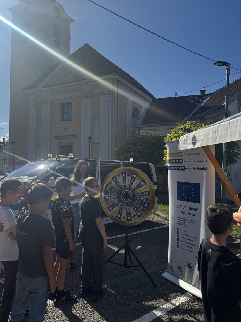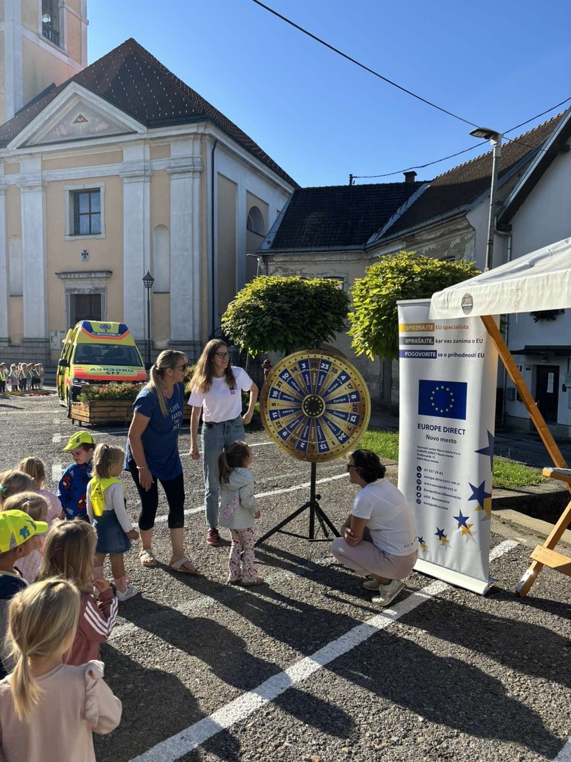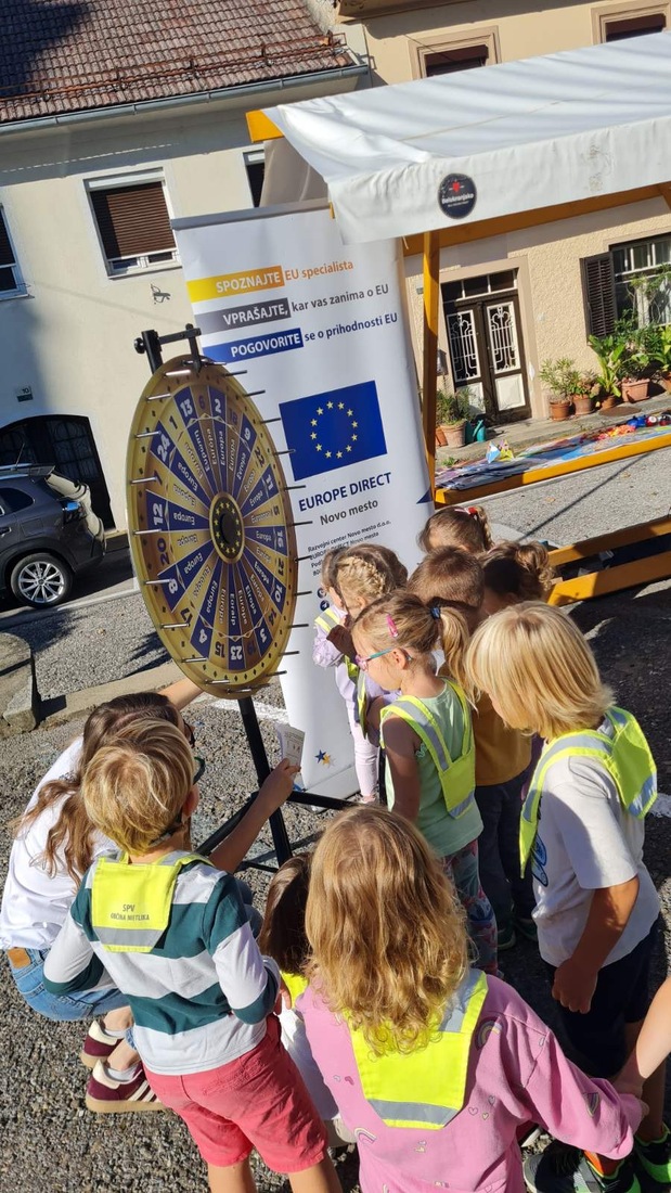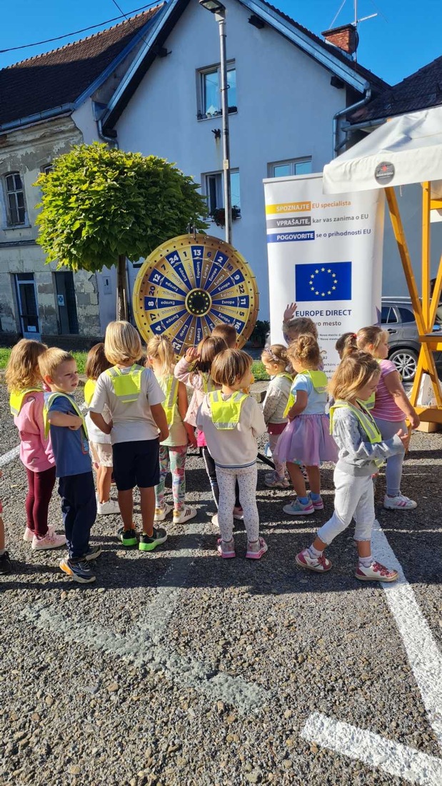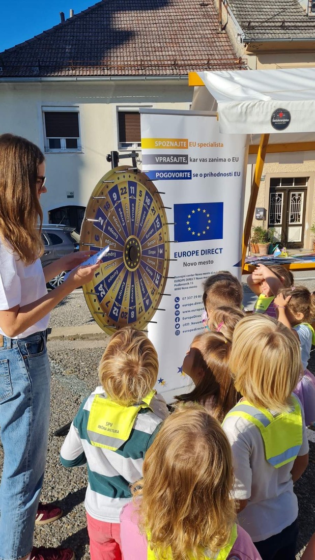 V Metliki so otroci zavrteli kolo sreče, ki ga je pripravila informacijska točka EUROPE DIRECT Novo mesto, in prejeli priložnostne nagrade. Aktivnost je bila priložnost za pogovor o trajnostni mobilnosti in skrbi za čisto ter zdravo okolje.