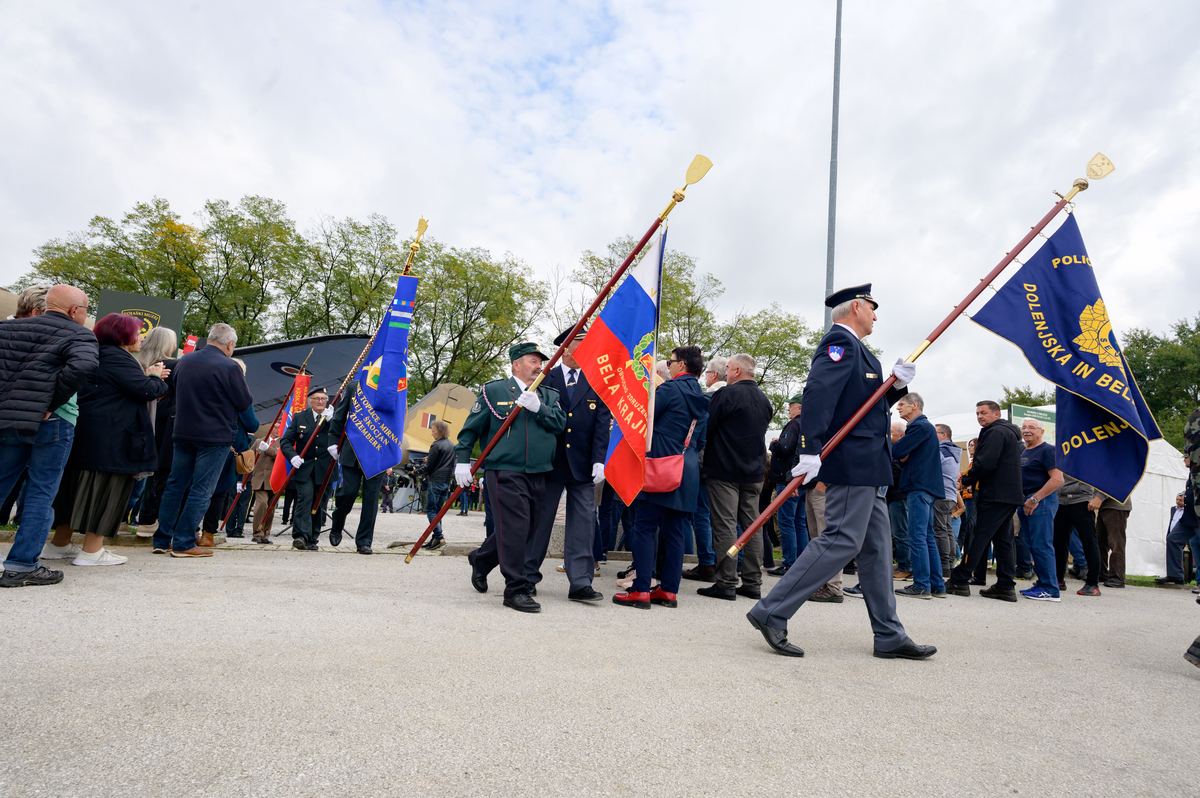 Nosilci praporjev in pripadniki 1. spominskega dolenjskega partizanskega bataljona