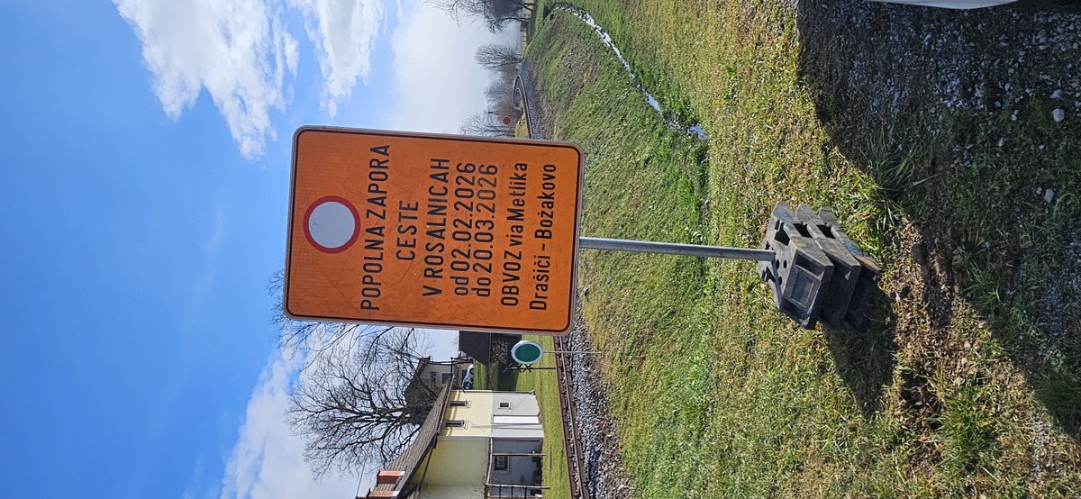 Popolna zapora državne ceste Metlika – Božakovo v Rosalnicah
