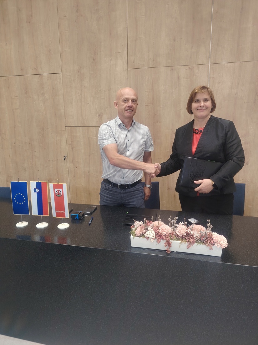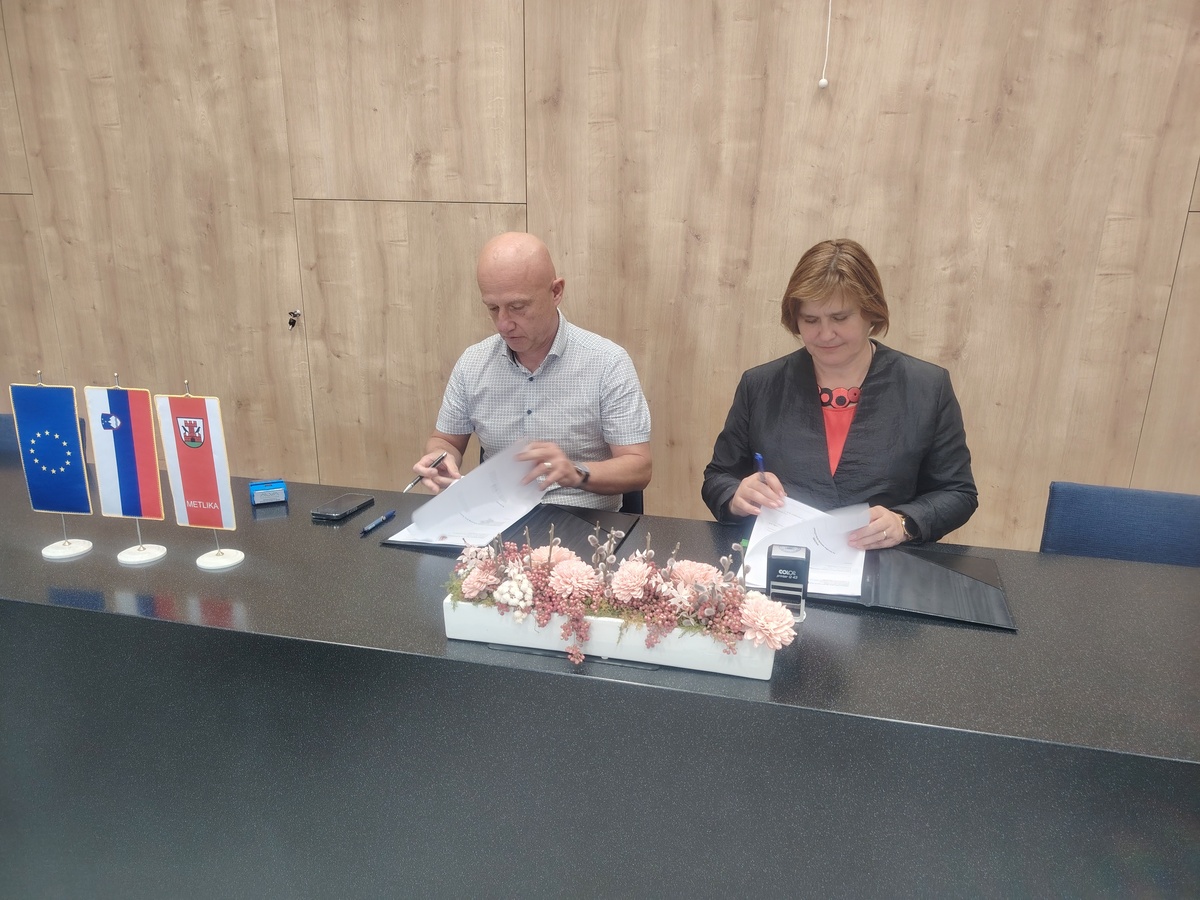 Danes, 22. 8. 2025, sta Jurij Višček, direktor podjetja Alva d. o. o. iz Šentlovrenca in Martina Legan Janžekovič, županja Občine Metlika, podpisala pogodbo za izvedbo del za sanacijo strehe na OŠ Podzemelj.