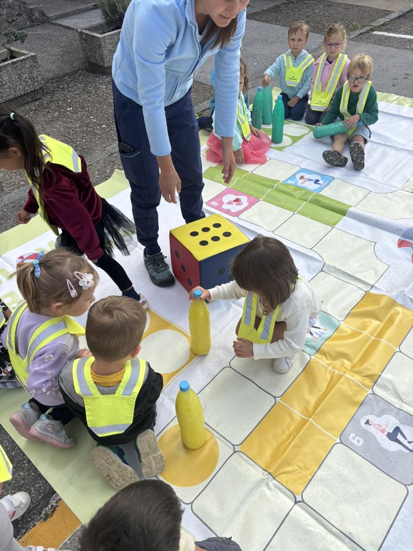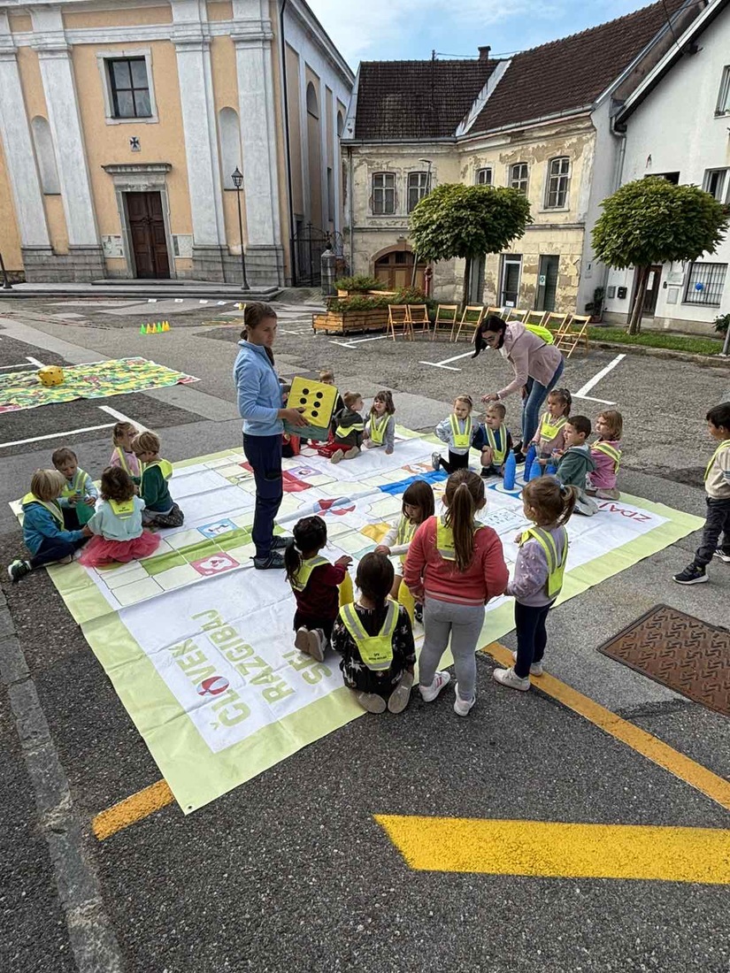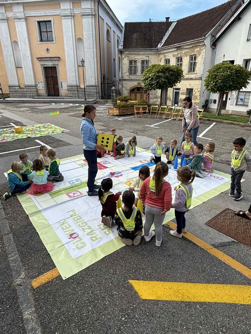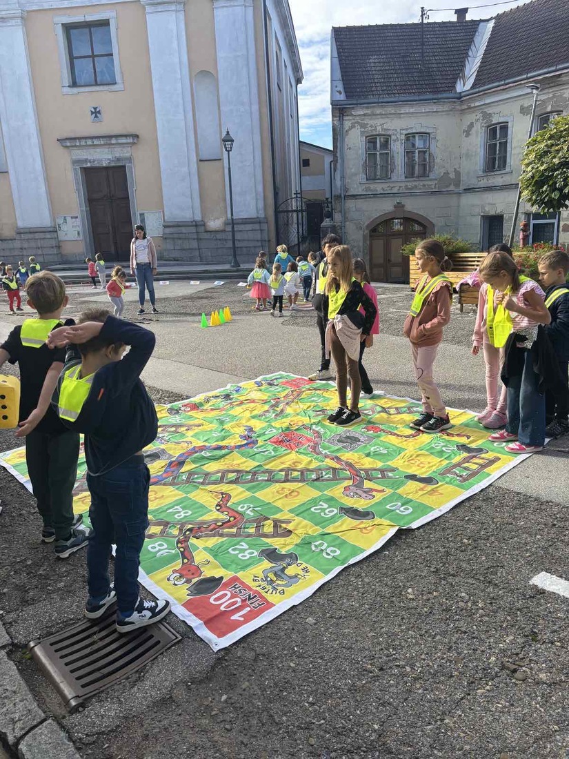 V sklopu Evropskega tedna mobilnosti so otroci zaigrali velikanski Človek, ne jezi se, poskusili zdrave prigrizke, risali in ustvarjali ter imeli uro telovadbe kar na prostem.