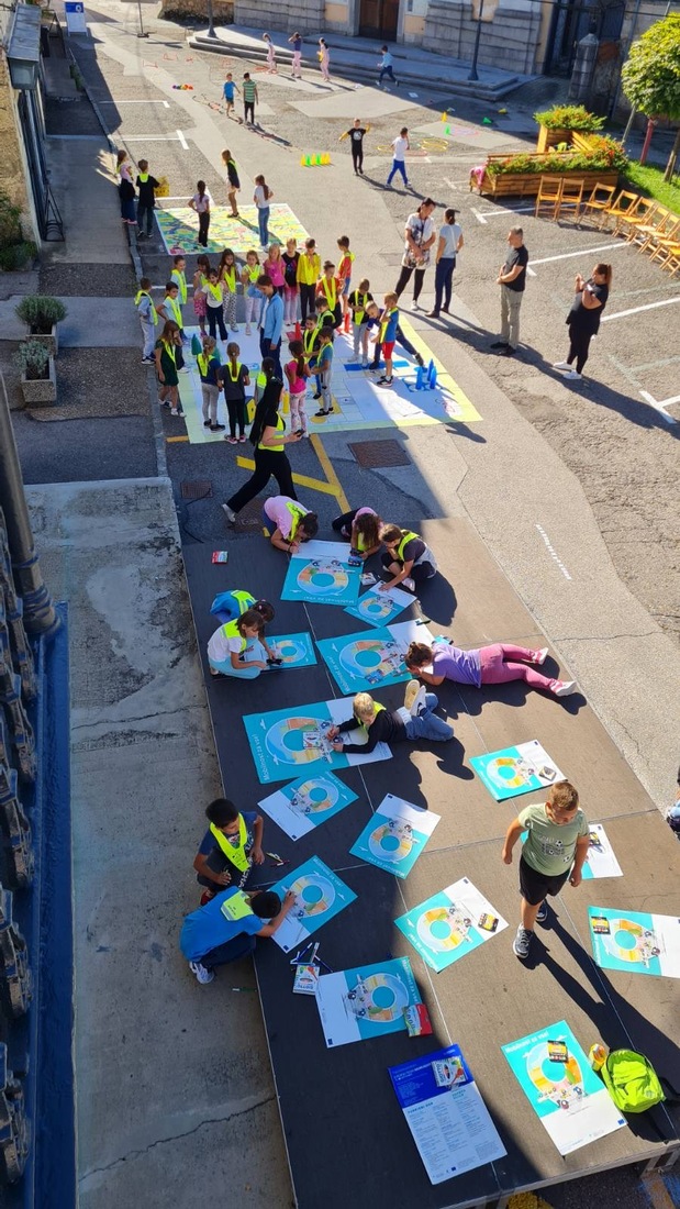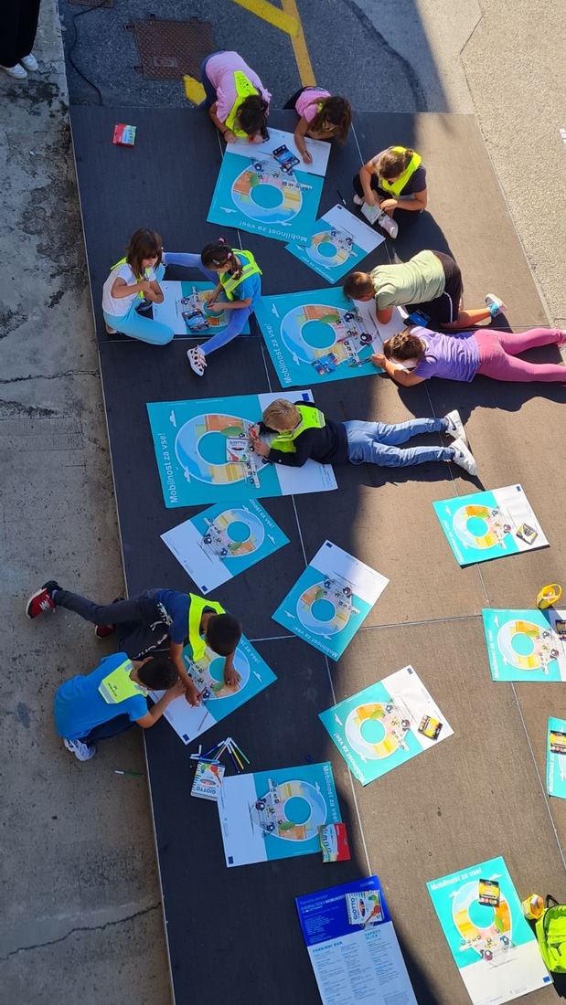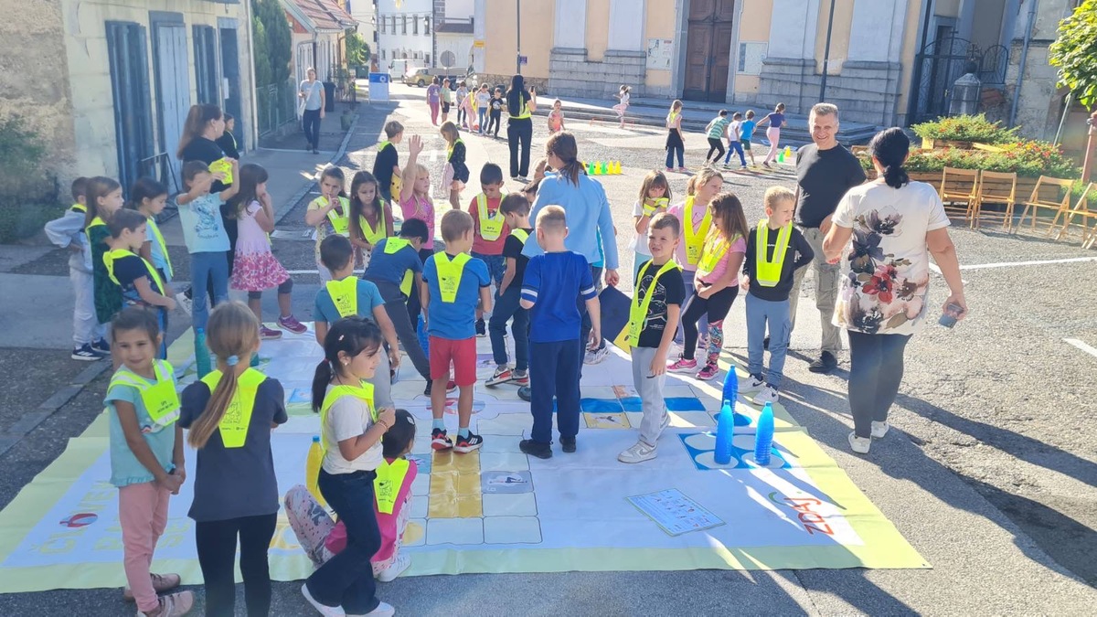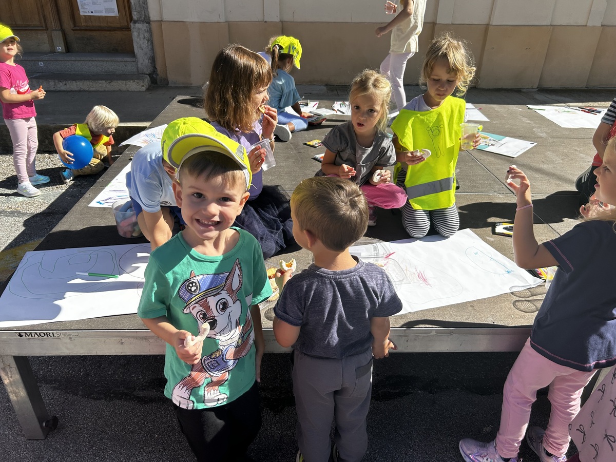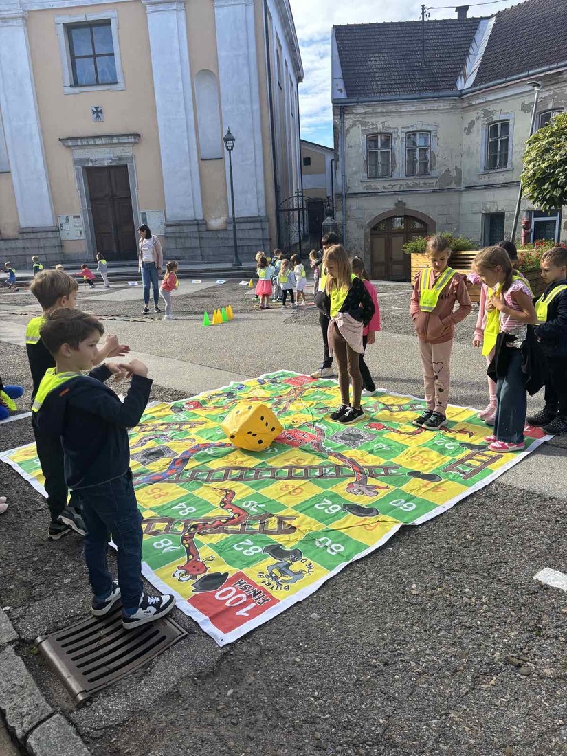 V sklopu Evropskega tedna mobilnosti so otroci zaigrali velikanski Človek, ne jezi se, poskusili zdrave prigrizke, risali in ustvarjali ter imeli uro telovadbe kar na prostem.
