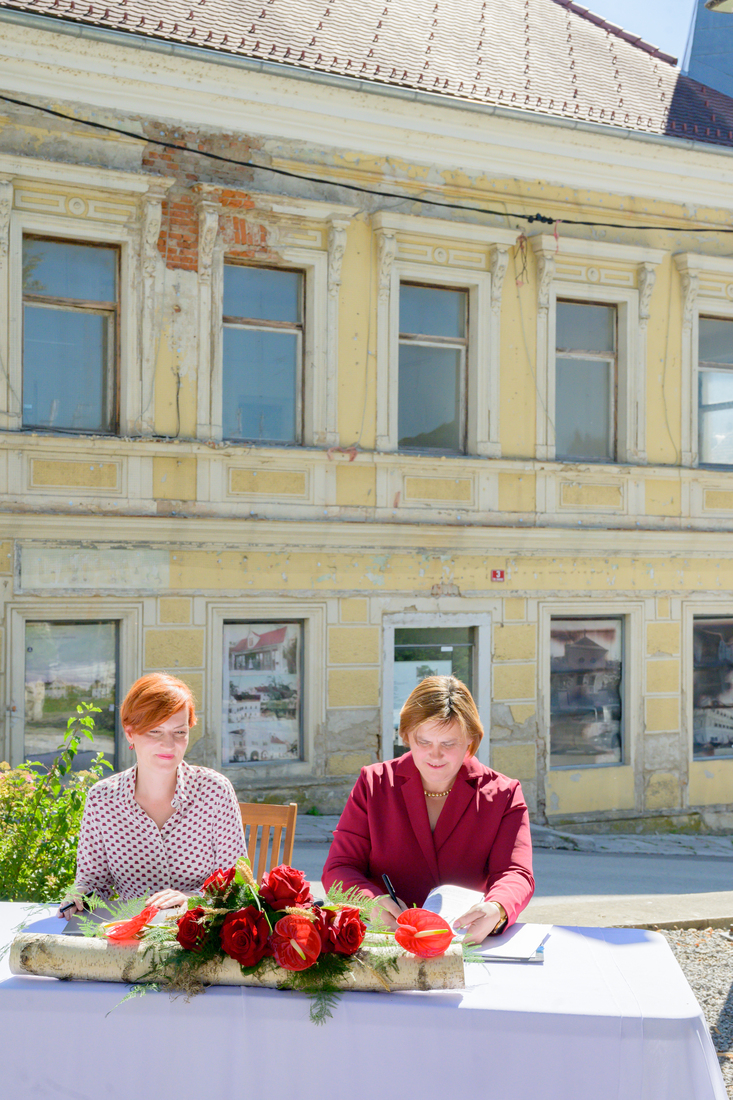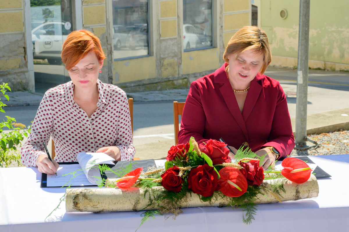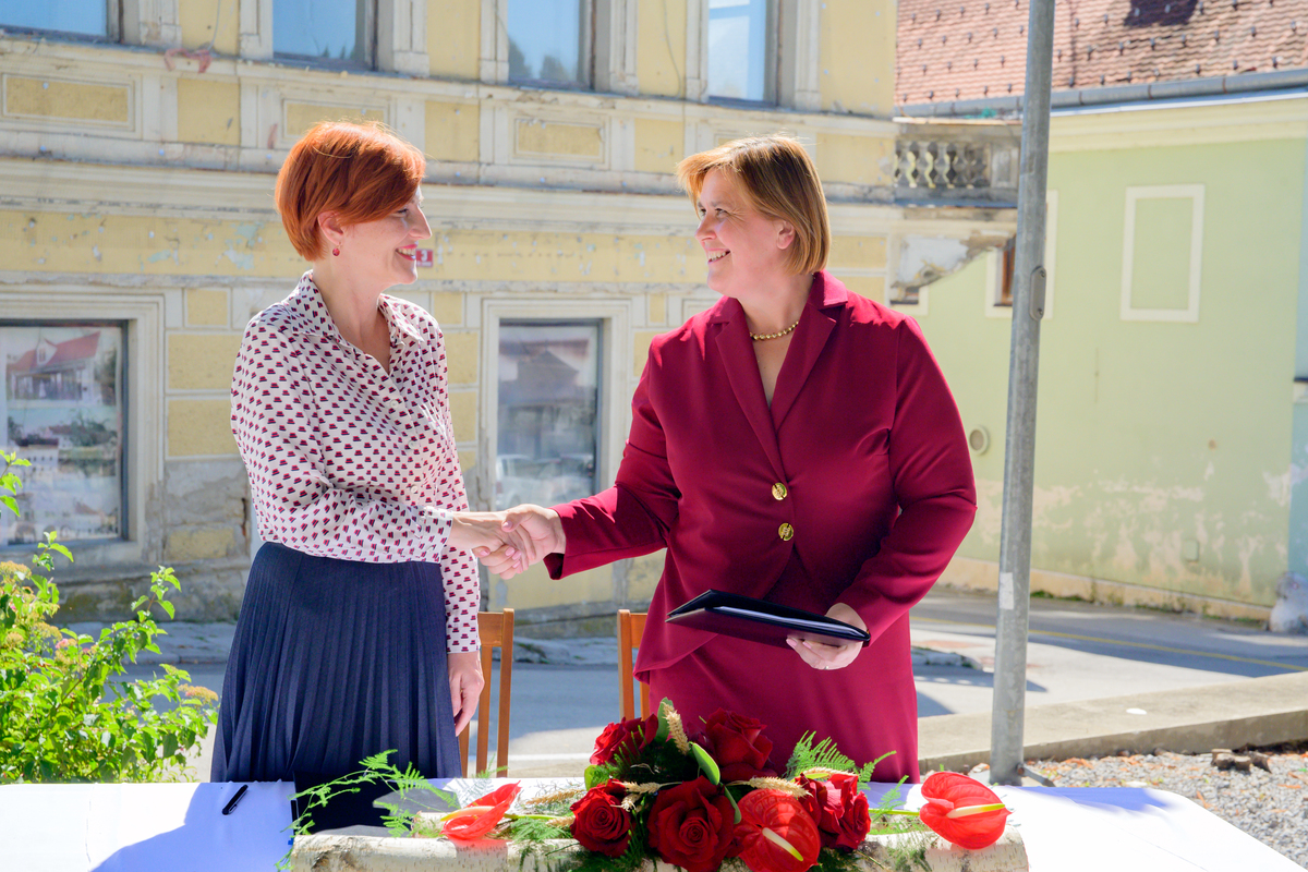 Občina Metlika podpisala pogodbo za obnovo stavbe Konzum – ministrica Vrečko si je ogledala gradbišča
