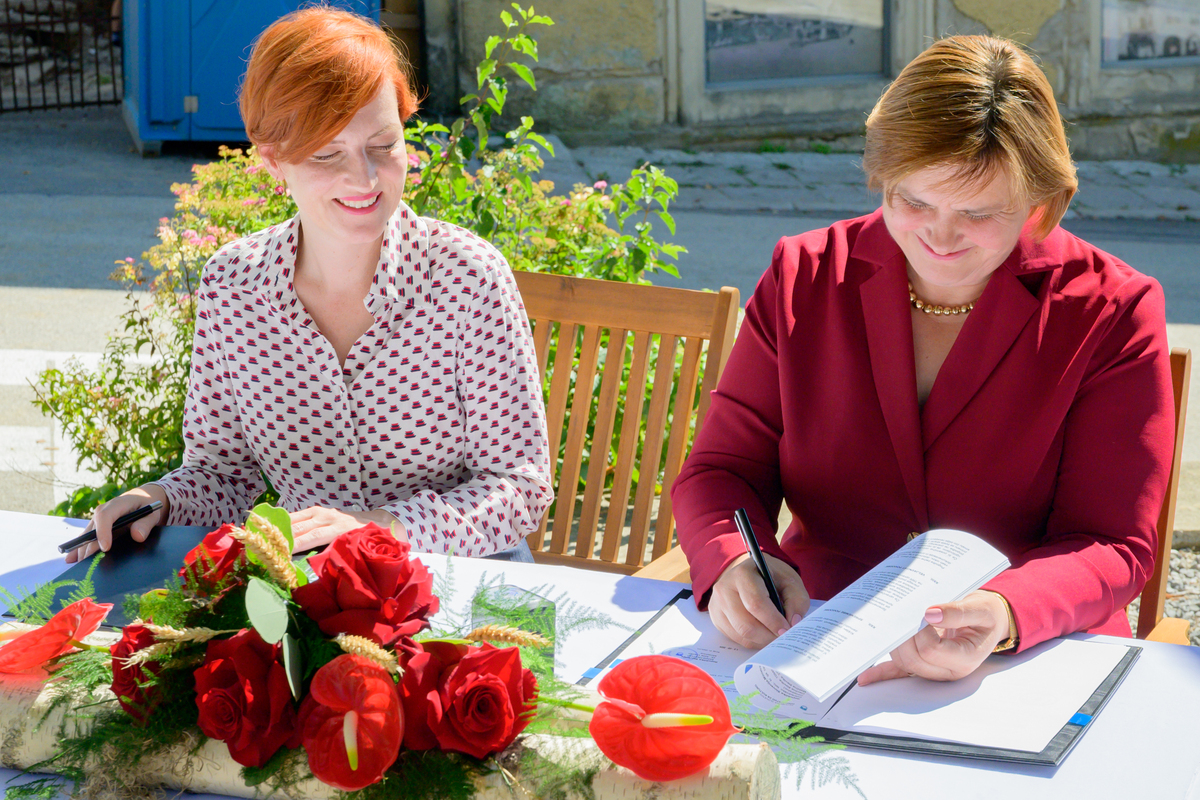 Občina Metlika je danes uspešno podpisala pogodbo za izvedbo projekta »Konzum – Hiša ustvarjalnosti«, ki bo v letih 2026–2028 prinesel celovito obnovo kulturnega spomenika lokalnega pomena – nekdanje meščanske hiše Konzum na Trgu svobode 3 v Metliki. Podpis pogodbe sta opravili županja Martina Legan Janžekovič in ministrica za kulturo Asta Vrečko.