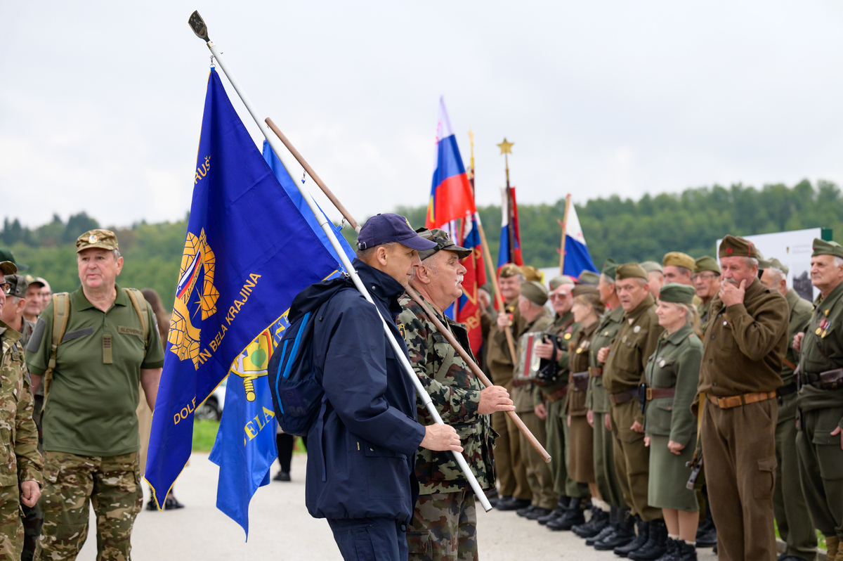 Nosilci praporjev in pripadniki 1. spominskega dolenjskega partizanskega bataljona