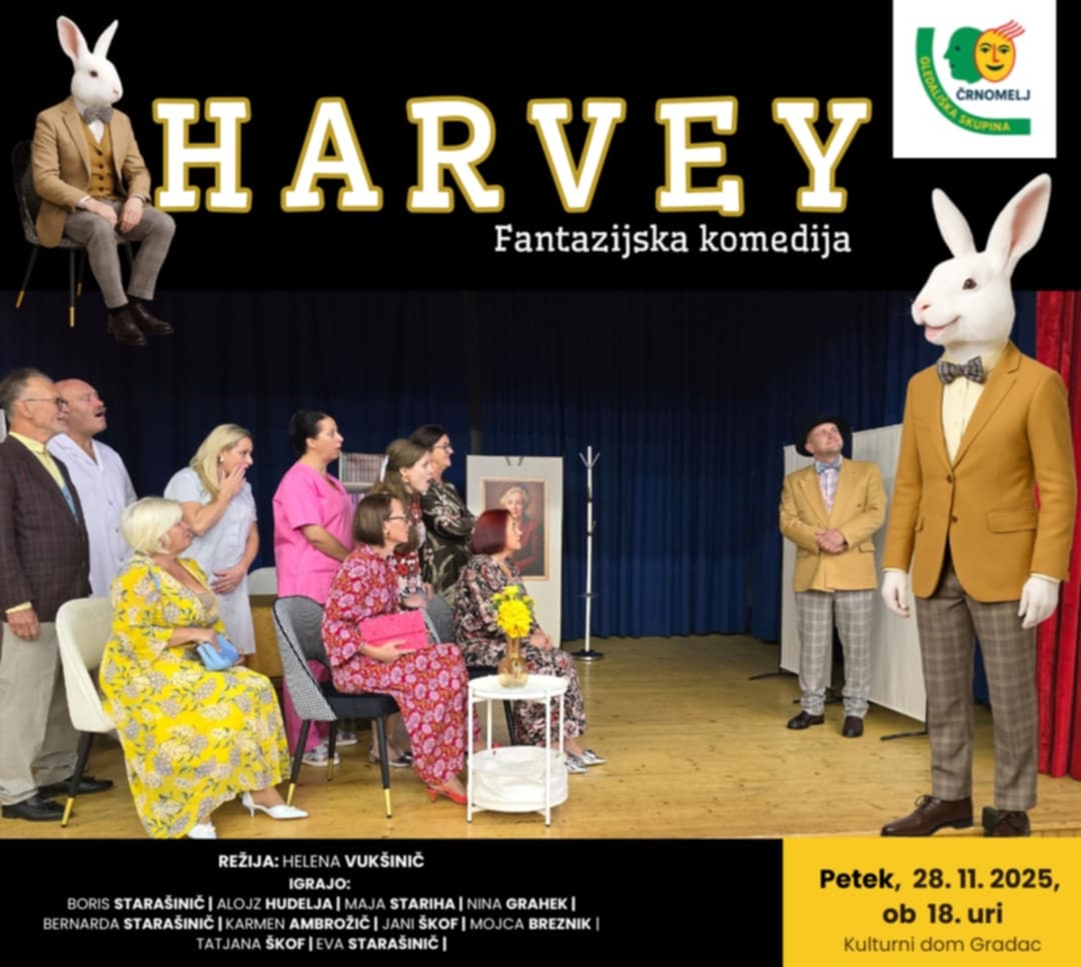 "Harvey" je komedija o ljudeh, ki živijo čisto običajna življenja – dokler se med njimi ne pojavi nekaj zelo nenavadnega: velikanski, 190 centimetrov visok zajec, ki ga vidi le redkokdo. Tisti, ki ga vidi, je menda nor … ali pa je morda prav on edini, ki vidi resnico?