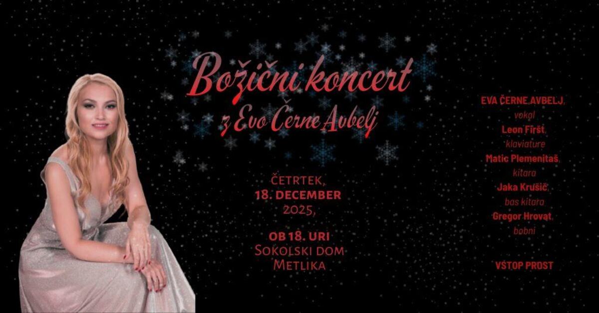 Eva Černe Avbelj pripravlja poseben praznični koncert, obogaten z vrhunsko zasedbo izjemnih glasbenikov. Na odru bodo zazvenele najlepše božične in praznične melodije, prežete s toplino, eleganco in Evinim prepoznavnim vokalom, ki vas popelje v svet spominov, iskrivosti in nežnosti.