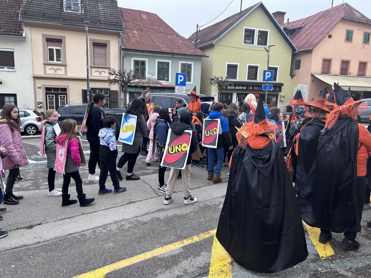 Pred občino so se predstavile tudi maškare iz Osnovna šola Metlika, ki so s svojo ustvarjalnostjo in energijo soustvarile živahno dogajanje v mestnem jedru.